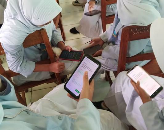 Setelah itu, para siswa melakukan Uji Coba Langsung menggunakan perangkat ponsel mereka. Selama praktik berlangsung, siswa menunjukkan antusiasme tinggi dan menyampaikan bahwa pembelajaran berbasis game terasa lebih menyenangkan dan tidak membosankan dibandingkan metode konvensional.